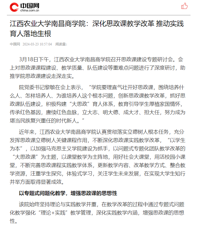 【中国网】Beat365官方网站:深化思政课教学改革 推动实践育人落地生根