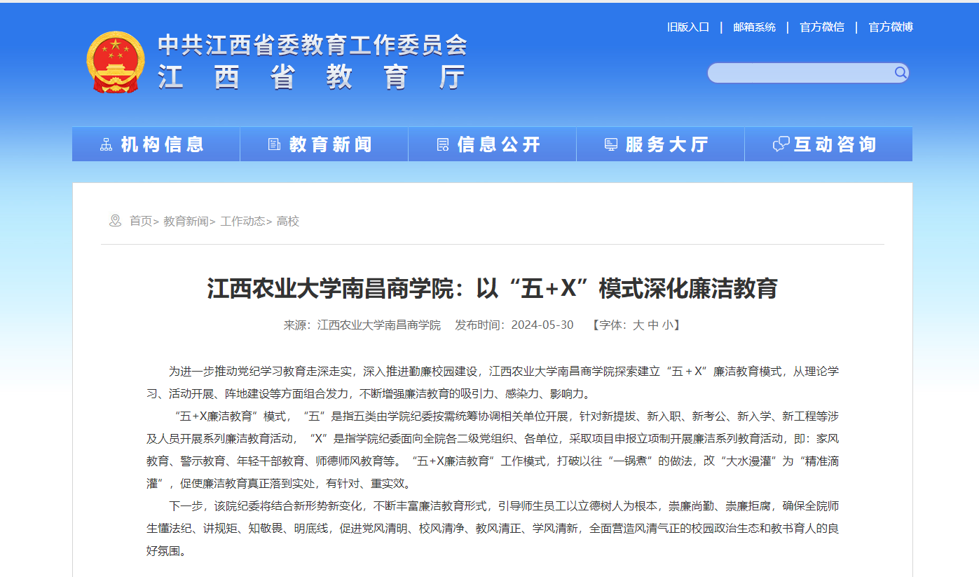 【江西省教育厅】Beat365官方网站:以“五+X”模式深化廉洁教育