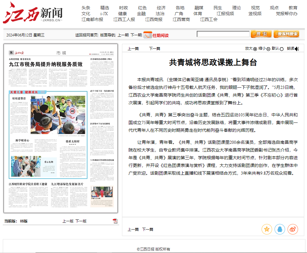 【江西日报】共青城将思政课搬上舞台