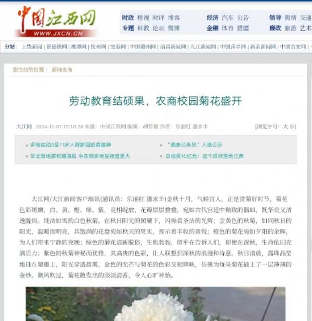 【中国江西网】劳动教育结硕果,农商校园菊花盛开