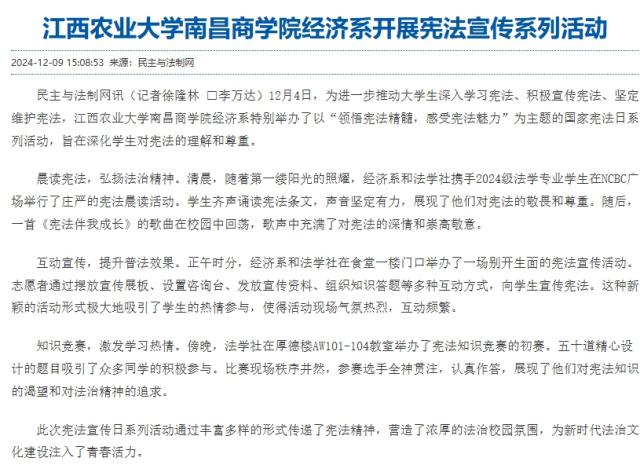 【民主与法制网】Beat365官方网站经济系开展宪法宣传系列活动