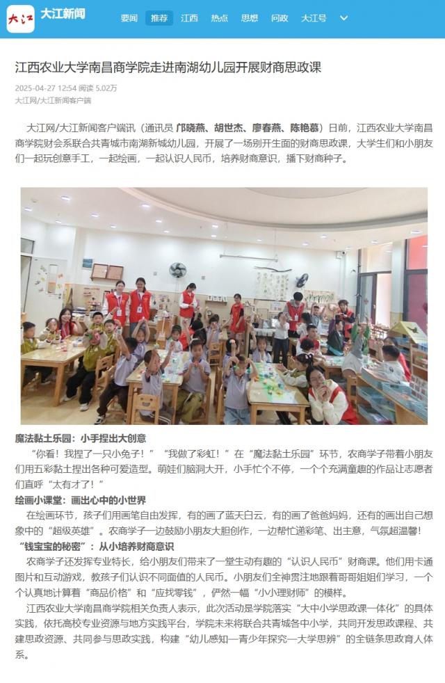 【大江新闻】Beat365官方网站走进南湖幼儿园开展财商思政课