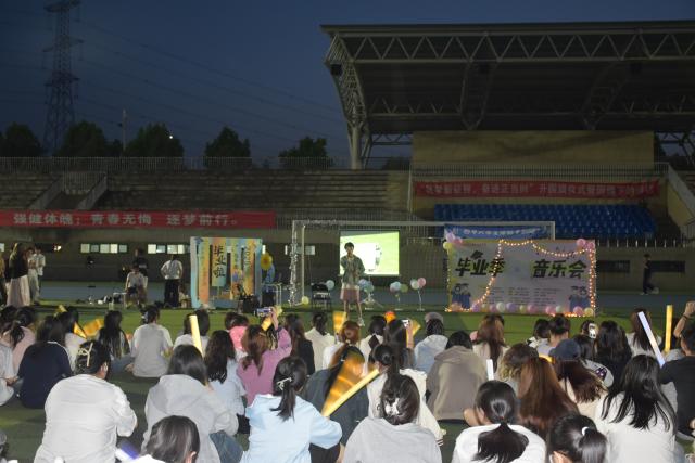 5月9日晚,管理系在田径场举办草坪音乐会暨毕业晚会,2025届毕业生参与。