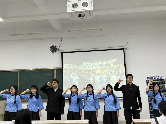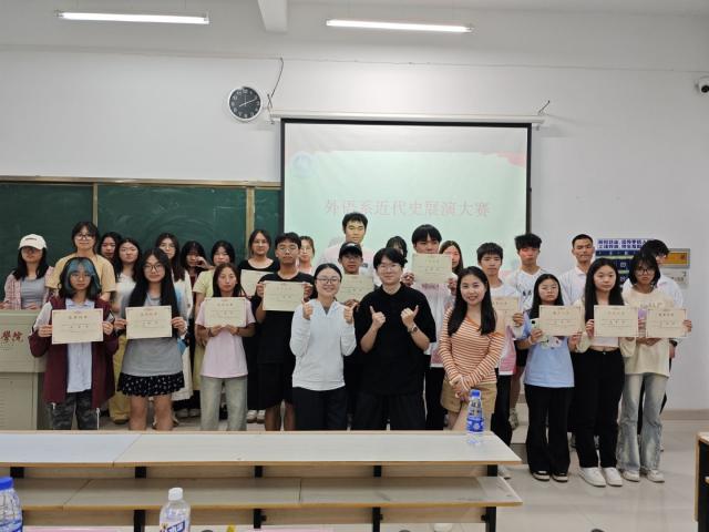 十三支参赛队伍精心准备,以饱满的热情投入表演。他们以话剧、朗诵、中英双语对话等多元形式,巧妙融合历史与现实元素,生动再现了中国近现代史上的关键瞬间。经过激烈竞逐,万倩组获一等奖,叶子组、刘宏宇组、杨智鑫组获二等奖,杨子妮组、陈林雨组、曾圣组、王雅珍组获三等奖。