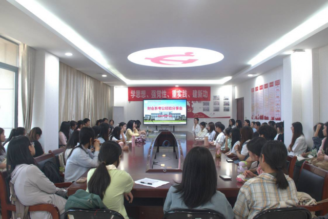5月12日下午,财会系在明辨楼KN401室举办公务员考试经验分享会,邀请2025届成功“上岸”的毕业生党员代表童子游、余欣雨、周子珍、孙慧儿四位同学进行经验分享。系办公室程乃琦主持,非毕业班学生自愿参会。