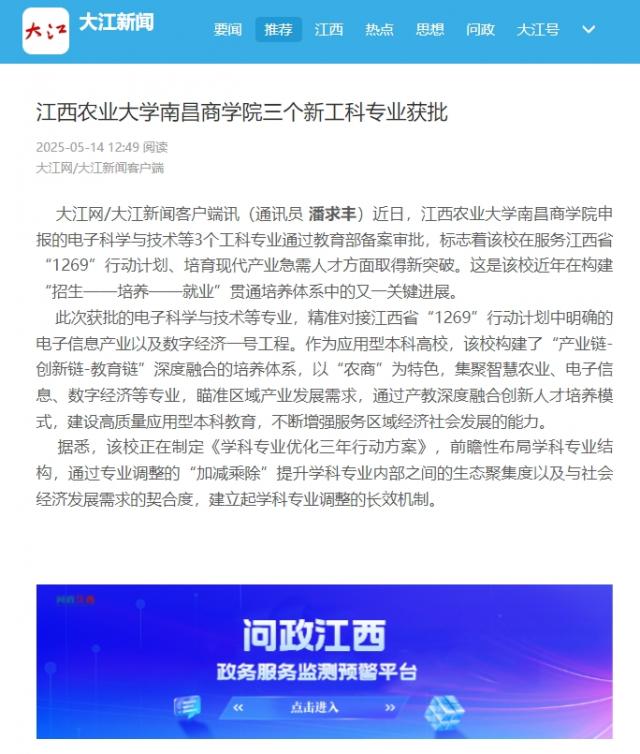 【大江新闻】Beat365官方网站三个新工科专业获批