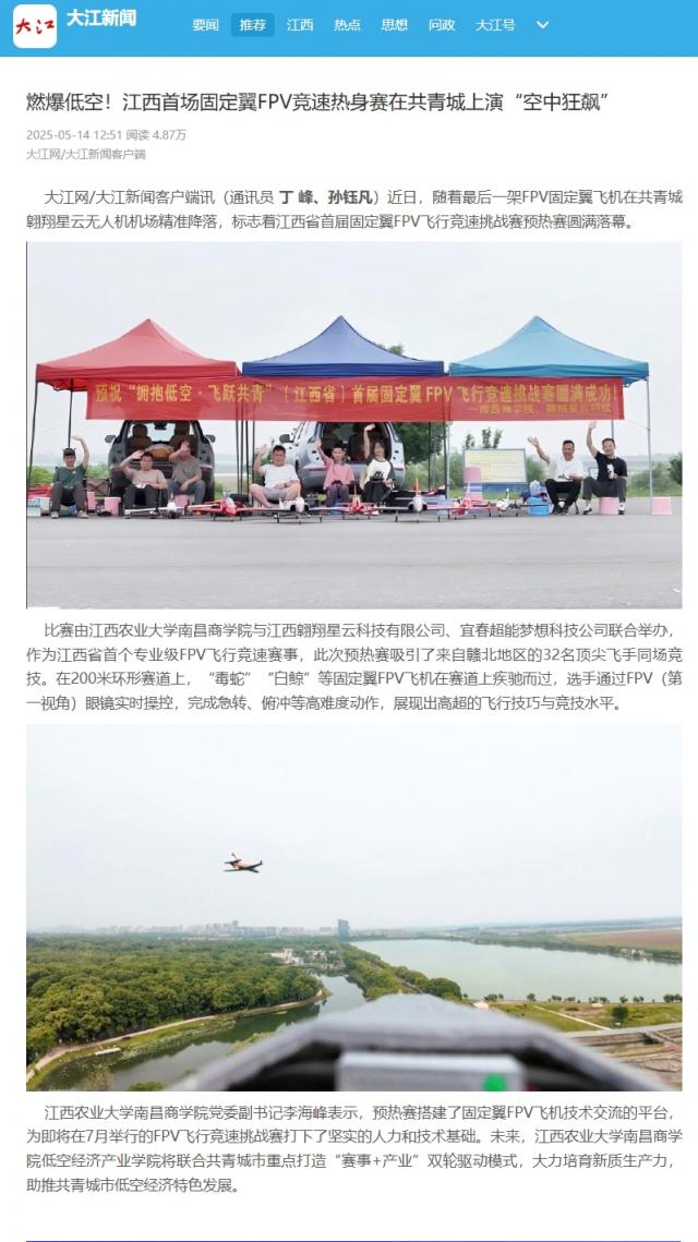 【大江新闻】燃爆低空!江西首场固定翼FPV竞速热身赛在共青城上演“空中狂飙”