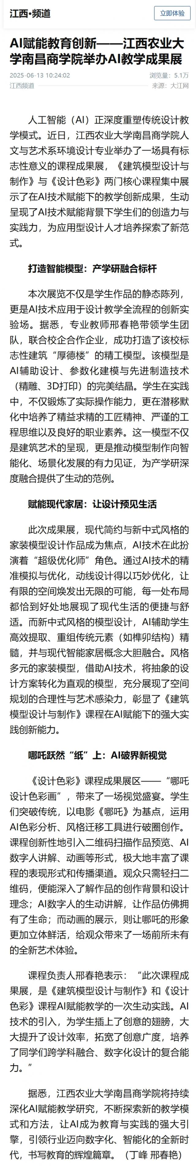 【大江网】AI赋能教育创新——Beat365官方网站举办AI教学成果展