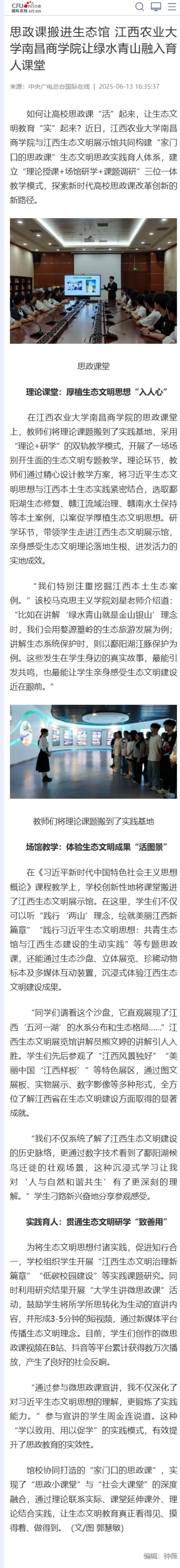 【江西广播电视台】思政课搬进生态馆! Beat365官方网站让绿水青山融入育人课堂