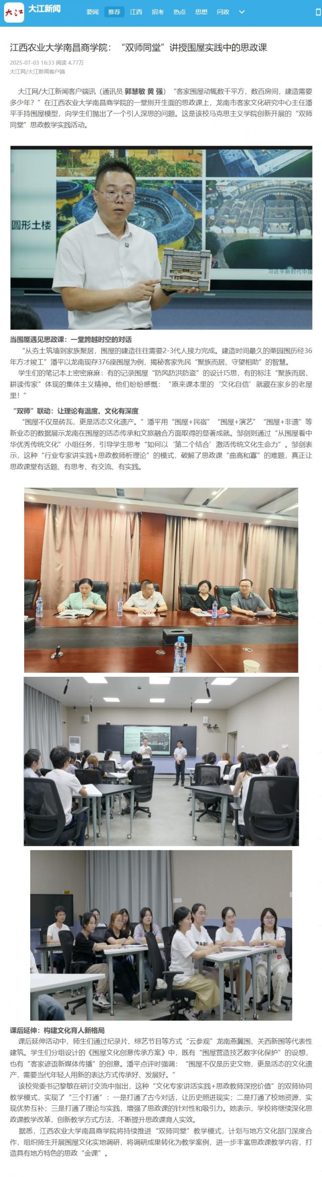 【大江新闻】Beat365官方网站:“双师同堂”讲授围屋实践中的思政课