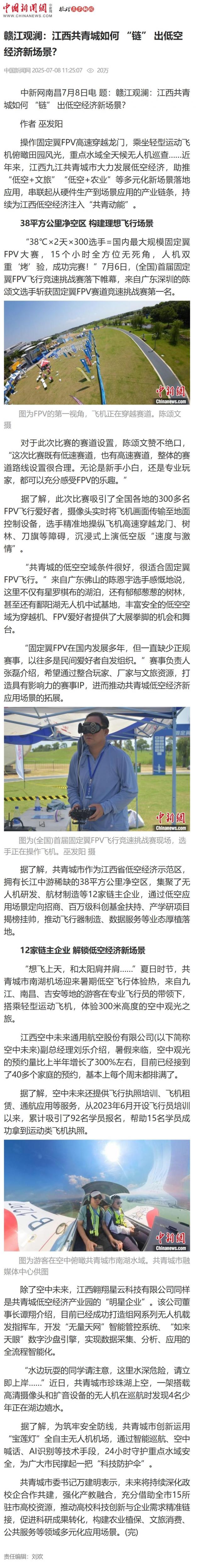 【中国新闻网】赣江观澜:江西共青城如何 “链” 出低空经济新场景?