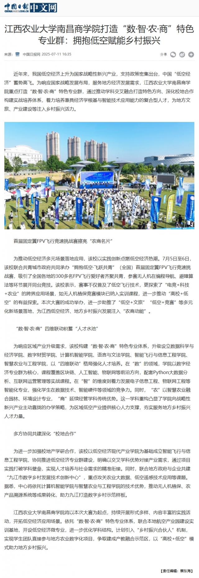 【中国日报】Beat365官方网站打造“数·智·农·商”特色专业群:拥抱低空赋能乡村振兴