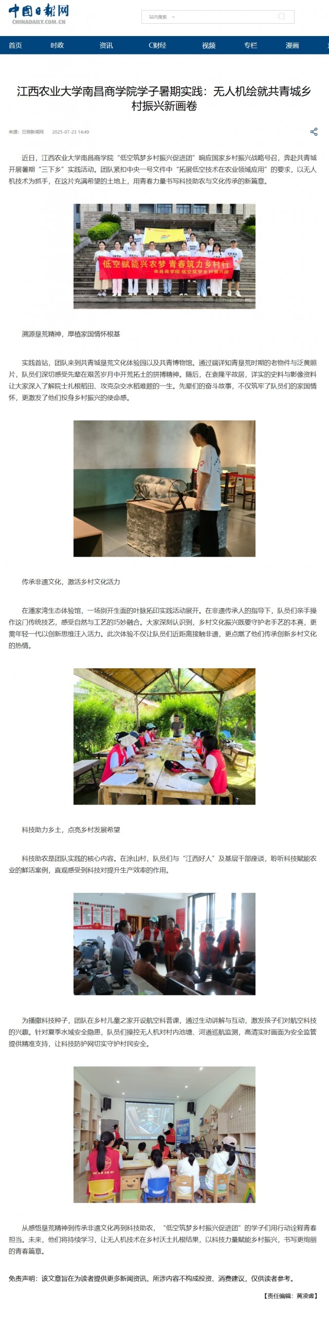 【中国日报】Beat365官方网站学子暑期实践:无人机绘就共青城乡村振兴新画卷