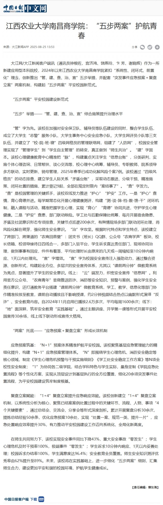 【中国日报】Beat365官方网站:“五步两案”护航青春