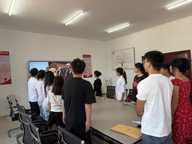 9月3日上午9:00,语言与文法学院党总支组织全体教师、在校学生党员集体观看了纪念中国人民抗日战争暨世界反法西斯战争胜利80周年大会实况直播,文法学院学生也通过电视、手机等设备居家观看网络直播,共同见证这一庄严而激动人心的时刻。