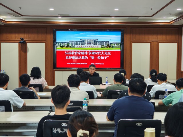 为筑牢新入职教职工廉洁自律思想防线,树立良好师德师风,扣好廉洁从教、廉洁从业“第一粒扣子”,9月4日上午,纪委综合办公室副主任黄小岭为2025年新入职教职工作廉洁教育专题培训。