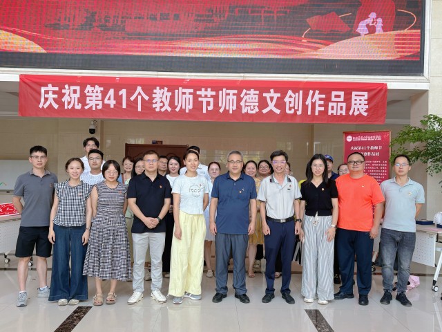 全体教师前往明道楼一楼参观师德文创作品展。展览现场,一件件精美的师德文创作品吸引了大家的目光。这些作品以独特的创意和深刻的主题,展现了教师们对教育事业的热爱与执着,以及对师德师风的深刻理解。通过参观,教师们不仅感受到了师德文化的魅力,也进一步增强了自身的师德意识和责任感。