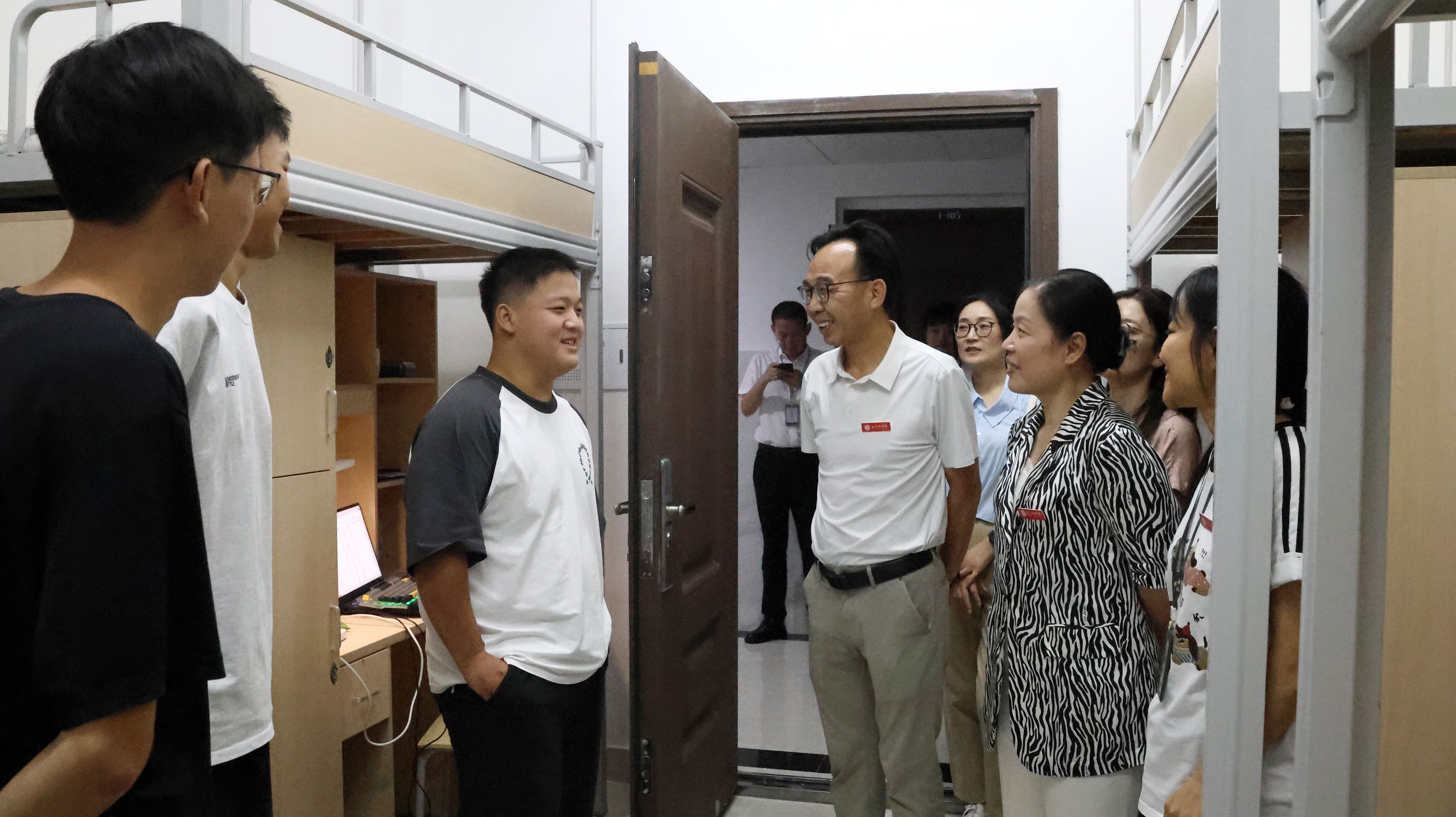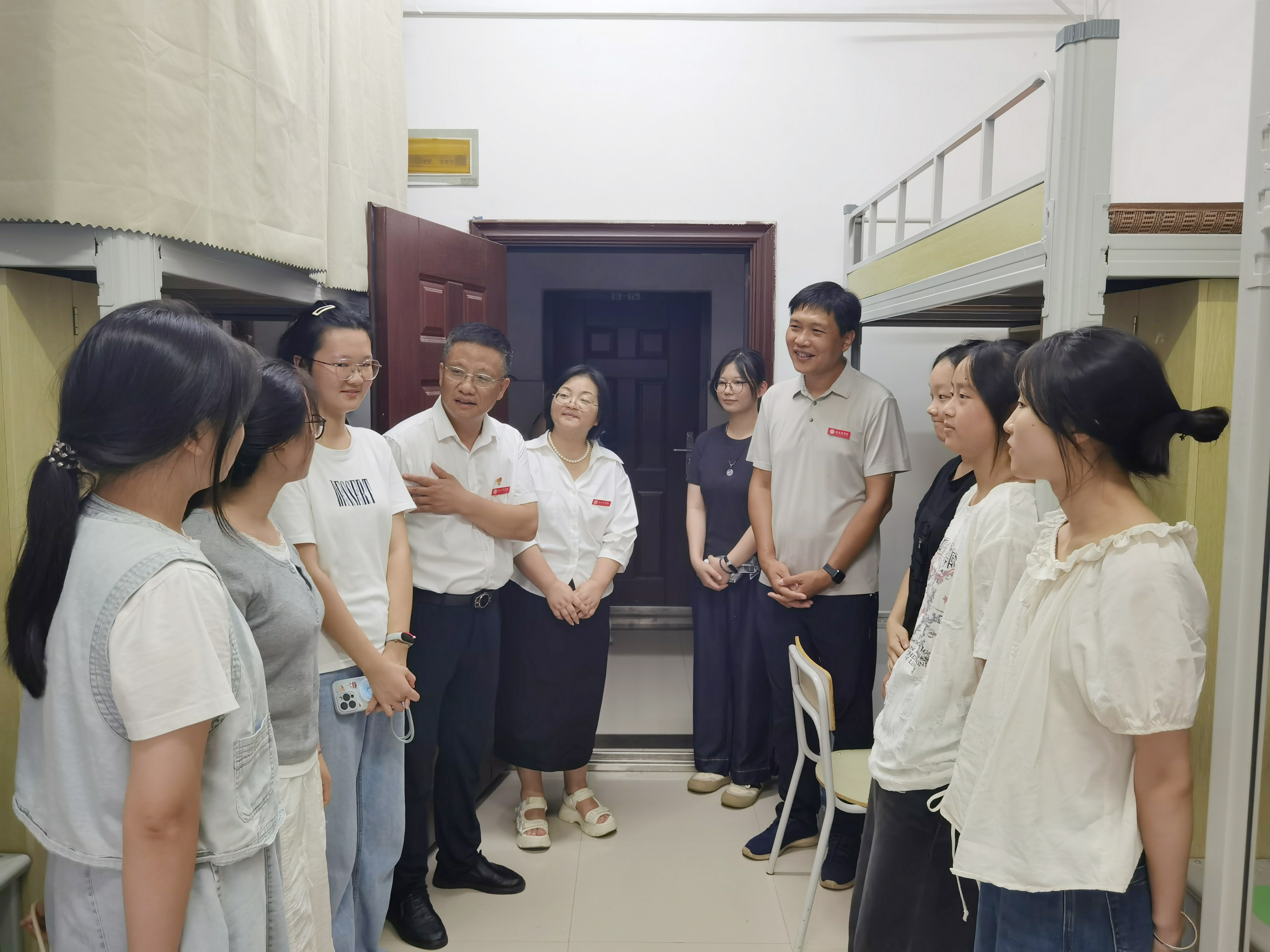 近日,为全面深入了解新生入学基本情况,帮助同学们适应新的环境与生活,院党委书记黎敏、院长胡国良等全体院领导前往各二级学院学生宿舍,走访看望2025级新生,为大家送去学院的问候与关怀。