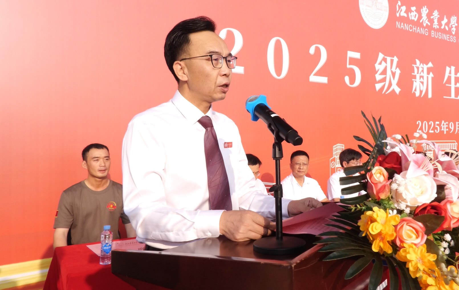 院长胡国良作开学典礼致辞,他代表学校向全体新同学致以最热烈的欢迎。他表示,学院正以“十四五”规划收官之年的奋进姿态,在高质量有特色应用型本科院校建设的赛道上驱动发展。坚持以赛促学,以创提质;以研促产,以用赋能;以文润心,以艺塑魂;以责担当,以合聚力,在时代发展的赛道上跑出农商加速度!同时他也提出了“三个坐标”,为新生校准青春航向:一是立鸿鹄志,在时代经纬中定位人生坐标;二是练硬核功,在知行合一中锻造能力坐标;三是修君子德,在和而不同中升华品格坐标。