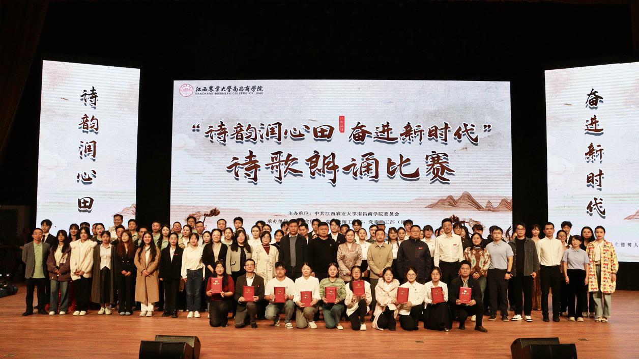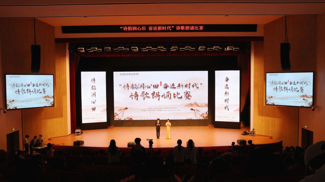10月23日下午,学院在笃行楼大报告厅举办“诗韵润心田 奋进新时代”主题诗歌朗诵比赛,院党委书记黎敏等在家院领导、全院师生共500余人观看。比赛邀请院党委副书记李海峰、副院长侯英梅,江西财经大学现代经济管理学院宣传部部长张富成、团委书记吴娇,共青城市戏剧曲艺家协会主席薛曙光担任评委,为12组参赛队伍进行打分评选。师生们以声为媒,将诗词韵律与时代精神相融,让诗韵与初心共振,也为农大本部百廿华诞营造浓厚校庆氛围。