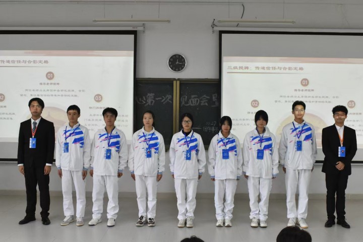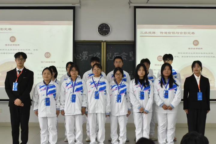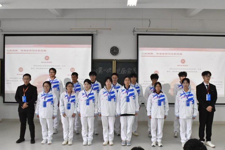 会议伊始,张琳琳强调成员要树立集体意识,成员之间协同合作,按指令完成任务。随后,赖昭渭热烈欢迎新成员加入团学事务中心,提出希望部门之间多交流沟通,成员多参与实践活动,敢于尝试,别怕出错。各部门部长依次为新干事颁发岗位牌并进行合影留念,赋予身份认同、明确责任使命。最后,赖昭渭围绕即将到来的校运动会开展动员,号召全体人员以运动会为契机,展现团结拼搏的精神风貌,同时要求团学事务中心各部门协同做好赛事服务。