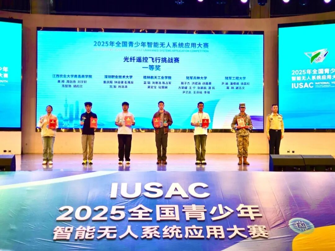 1018日,2025年全国青少年智能无人系统应用大赛在上海落下帷幕。学院代表队“商院梦之队”在光纤遥控飞行挑战赛项目中,5发全部命中斩获满分100分,冠绝全场,获得全国第一。本次比赛由中央宣传部宣传教育局(全民国防教育局)、教育部体育卫生与艺术教育司、中央军委国防动员部政治工作局指导,中国航空学会、中国兵工学会主办,旨在深入学习贯彻习近平总书记关于加强全民国防教育的重要论述和重要指示批示精神。