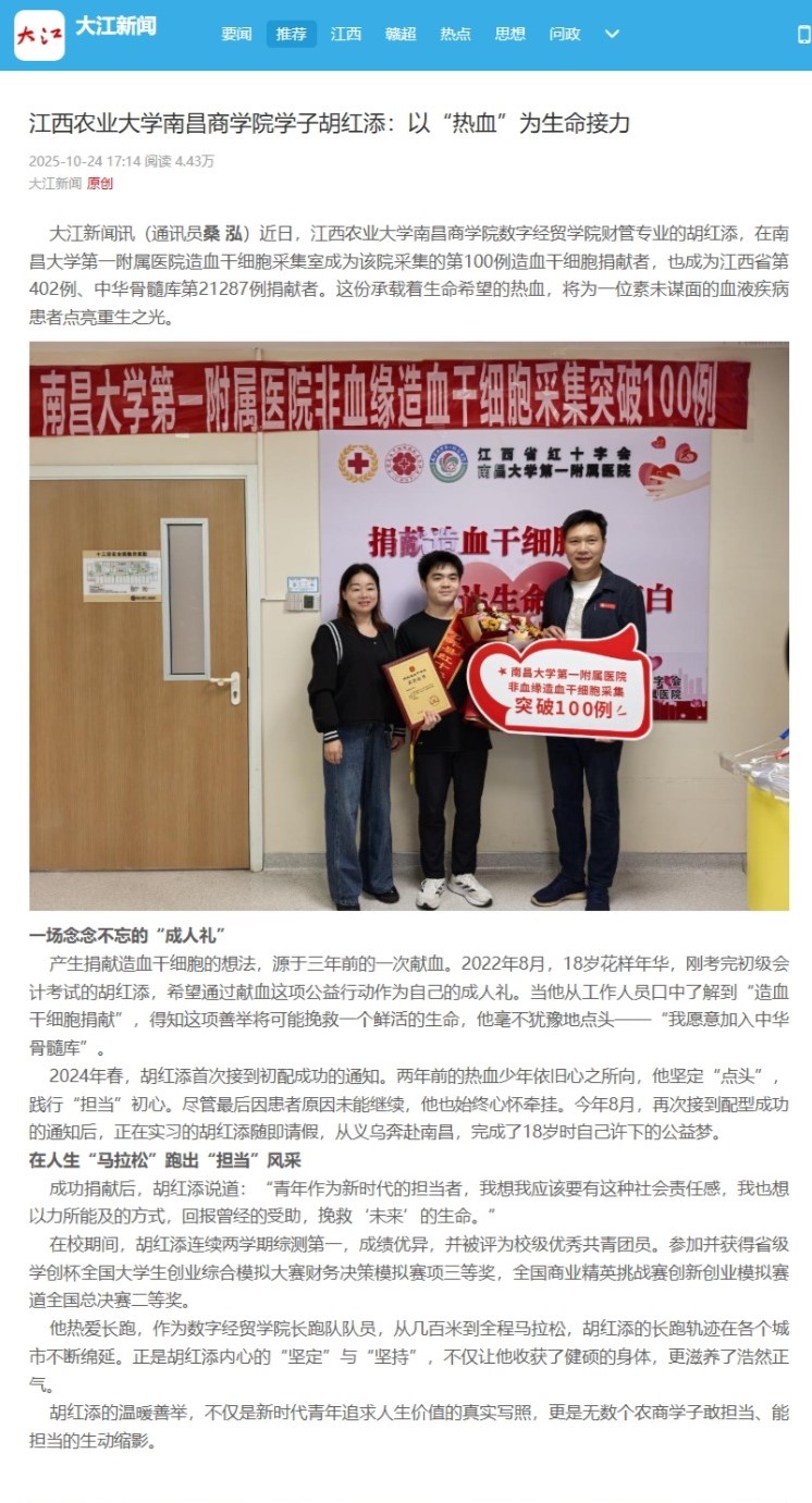 【大江新闻】Beat365官方网站学子胡红添:以“热血”为生命接力