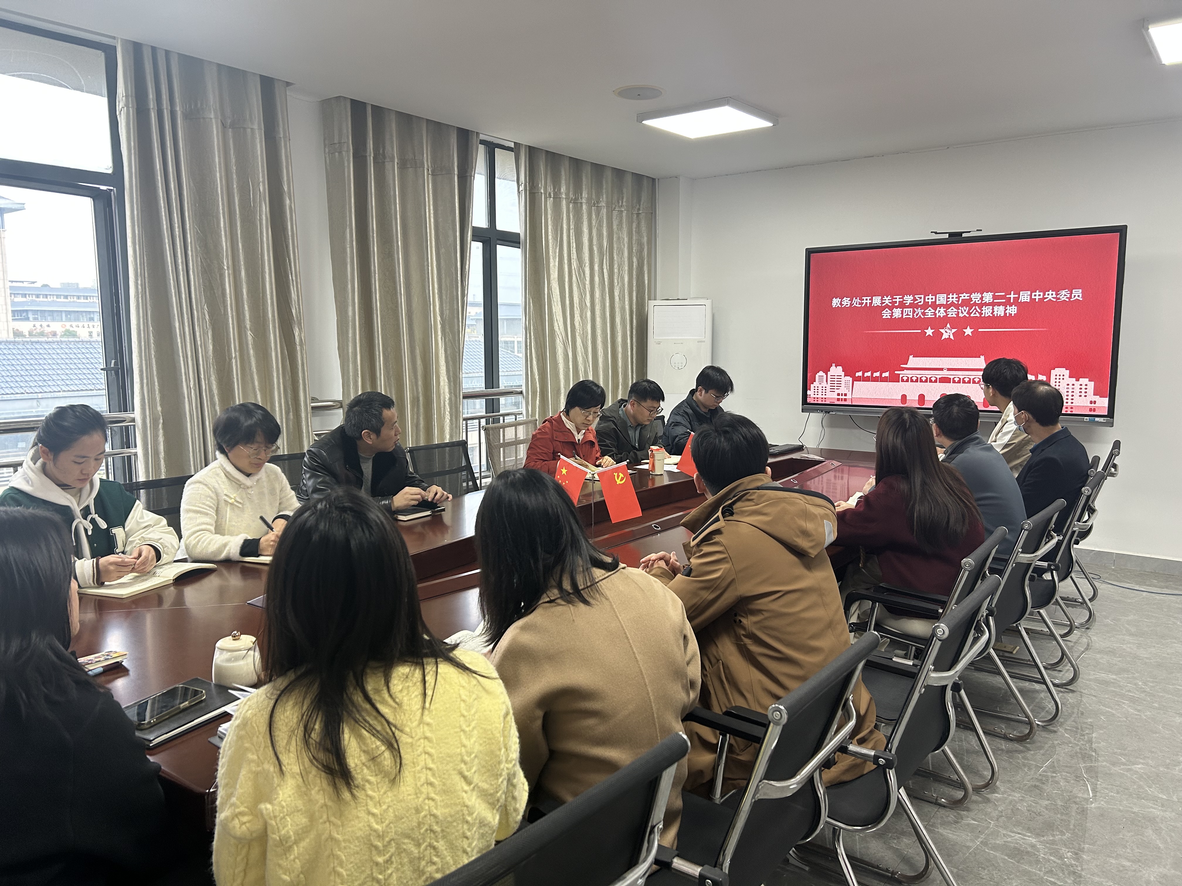 近日,教务处全体教师在明辨楼KS301会议室召开专题学习会,深入学习领会党的二十届四中全会精神,统一思想、凝聚力量。