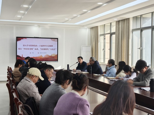 潘求丰以《凝心聚力担使命 砥砺前行谱新篇——深入学习贯彻党的二十届四中全会精神》为题讲授专题党课。他围绕深刻领会“十四五”时期的辉煌成就、准确把握党中央对发展形势的科学判断、全面领会“十五五”发展的宏伟方略、切实推动全会精神落地生根四个方面进行系统讲解。他强调,全体党员要把学习贯彻全会精神与落实立德树人根本任务相结合,在人才培养、科研创新、社会服务中勇担使命、争当先锋。