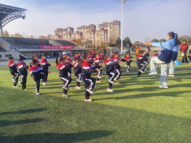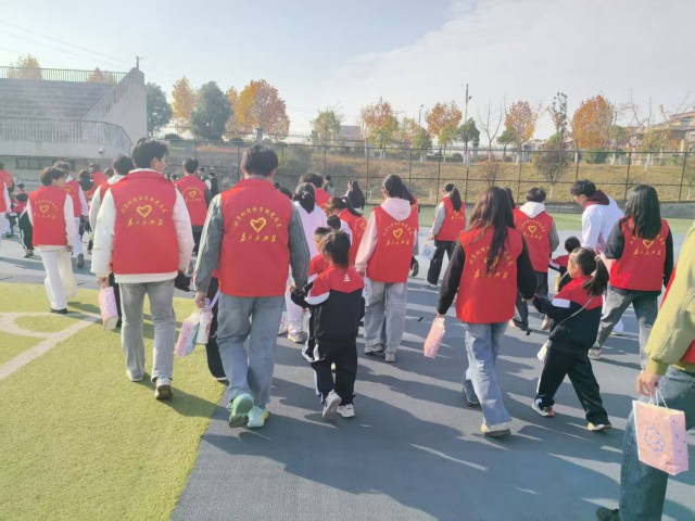 学生党员提前到岗,在操场入口列队迎接小朋友,并以“一对一”模式全程陪护,确保活动有序开展。文艺展演环节亮点纷呈,无人机驾驶表演在空中勾勒科技轨迹,展现智能魅力;排舞队活力献舞,点燃现场氛围;红色班级合唱团唱响《紫荆花盛开》《黄河大合唱》等经典曲目,以激昂旋律厚植红色基因。