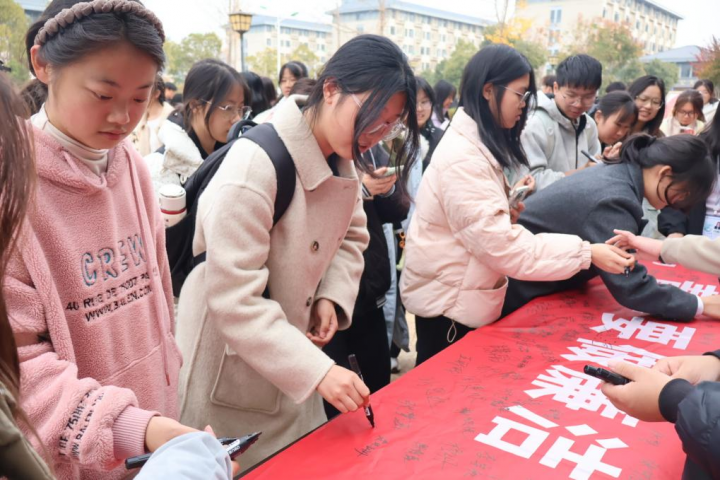 观展览,来往师生们驻足廉洁主题绘画、剪纸与设计作品展,一幅幅作品以丹青翰墨描绘风骨,以镂影剪彩裁刻初心,实现了艺术美感与廉洁教育的深度融合。听讲解,院纪委指导的廉洁社学生骨干们深入浅出、言简意赅,将意义深刻的廉洁故事融入诚信考试、评优评先等具体情境,加深大家对廉洁的思想认识。签承诺,师生们在横幅上郑重署名,表示要以实际行动践行“廉洁行动派”的庄严承诺。