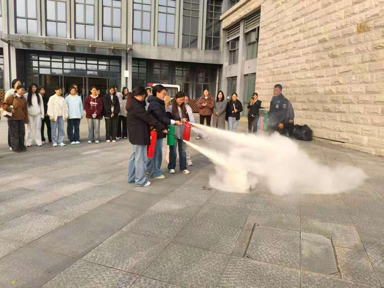 专题培训环节,电梯维保单位技术人员系统讲解了电梯知识、困人应急处置流程和注意事项,孙孝武、岳宗发老师分别讲授逃生知识和紧急情况下闸机的快速通行方法并进行现场演示,罗咏梅老师带领大家实地熟悉馆内安全出口的具体位置与疏散路线。实战操作环节,在张允老师的专业指导下,在场师生了解了各种灭火器的应用场景,以及“提拔握压”的使用要领,并分批进行了灭火实战演练。