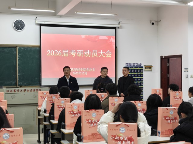 为充分发挥党员先锋模范作用,切实为考研学子办实事、解难题,12月16日下午,计算机智能学院党总支在厚德楼A205教室举行2026届考研动员大会。计算机智能学院院长黄小岭、党总支书记杨谨鸿、副院长龚文辉及全院考研学子共同参会。