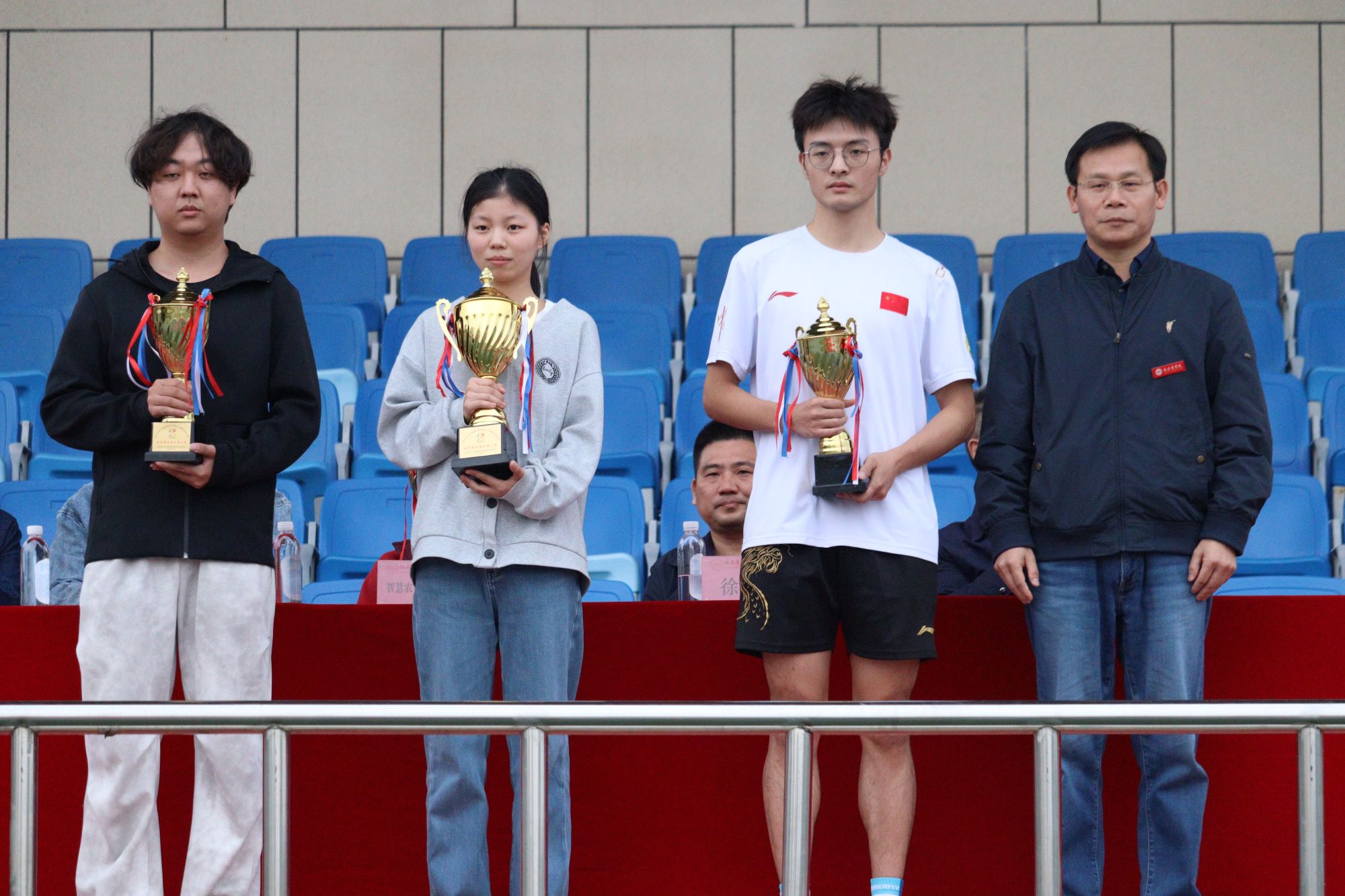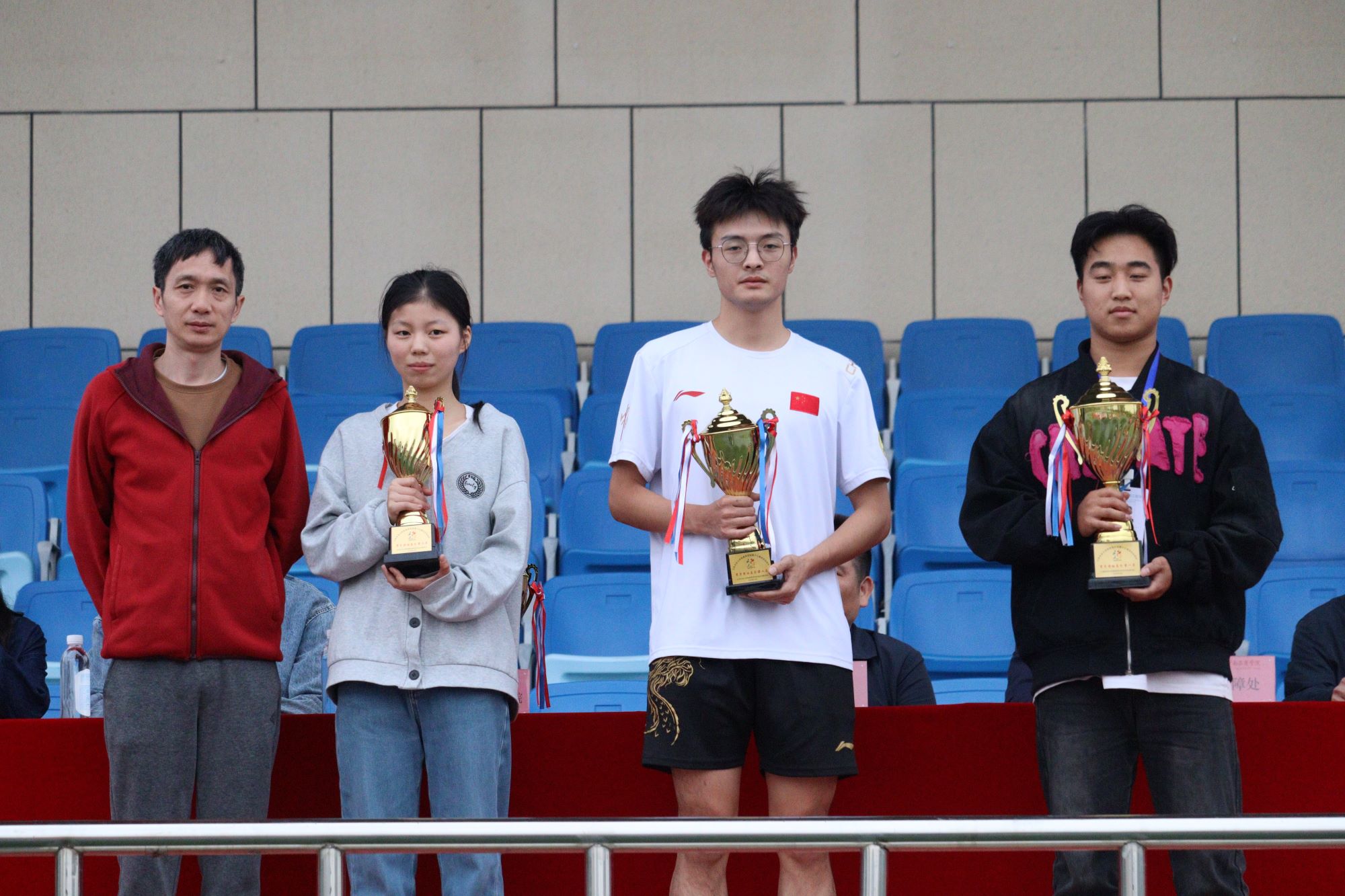 本届运动会总裁判长楚凯老师宣布比赛成绩:语言与文法学院院、数字财贸学院、智慧农业与工程学院分别荣获女子团体总分前三名;数字财贸学院、语言与文法学院、智慧农业与工程学院分别斩获男子团体总分前三名;语言与文法学院、智慧农业与工程学院、数字财贸学院和数据科学与经济学院位居男女团体总分前三名;智能飞行与信息工程学院、语言与文法学院、智慧农业与工程学院荣获教工组男女团体总分前三名。