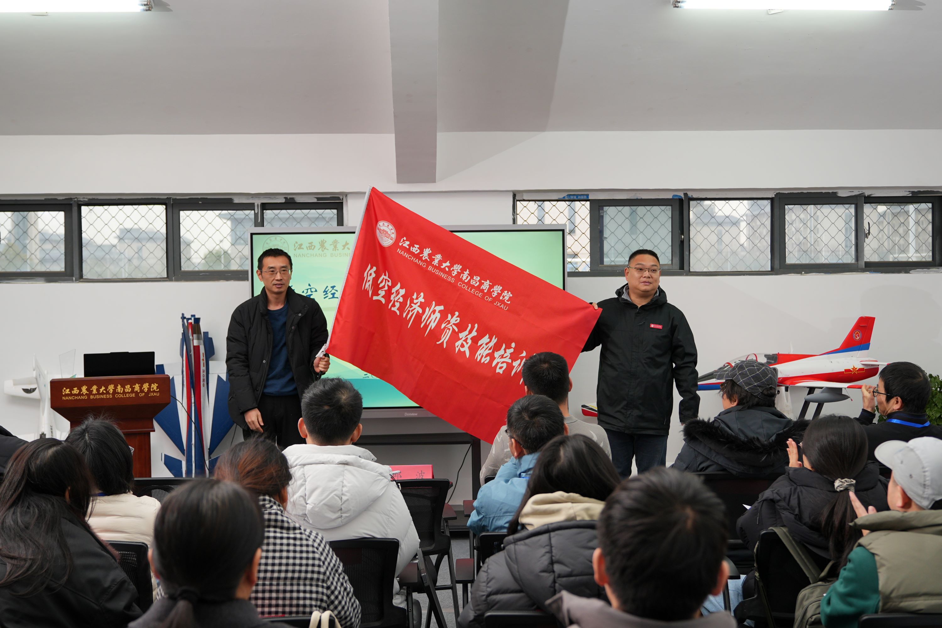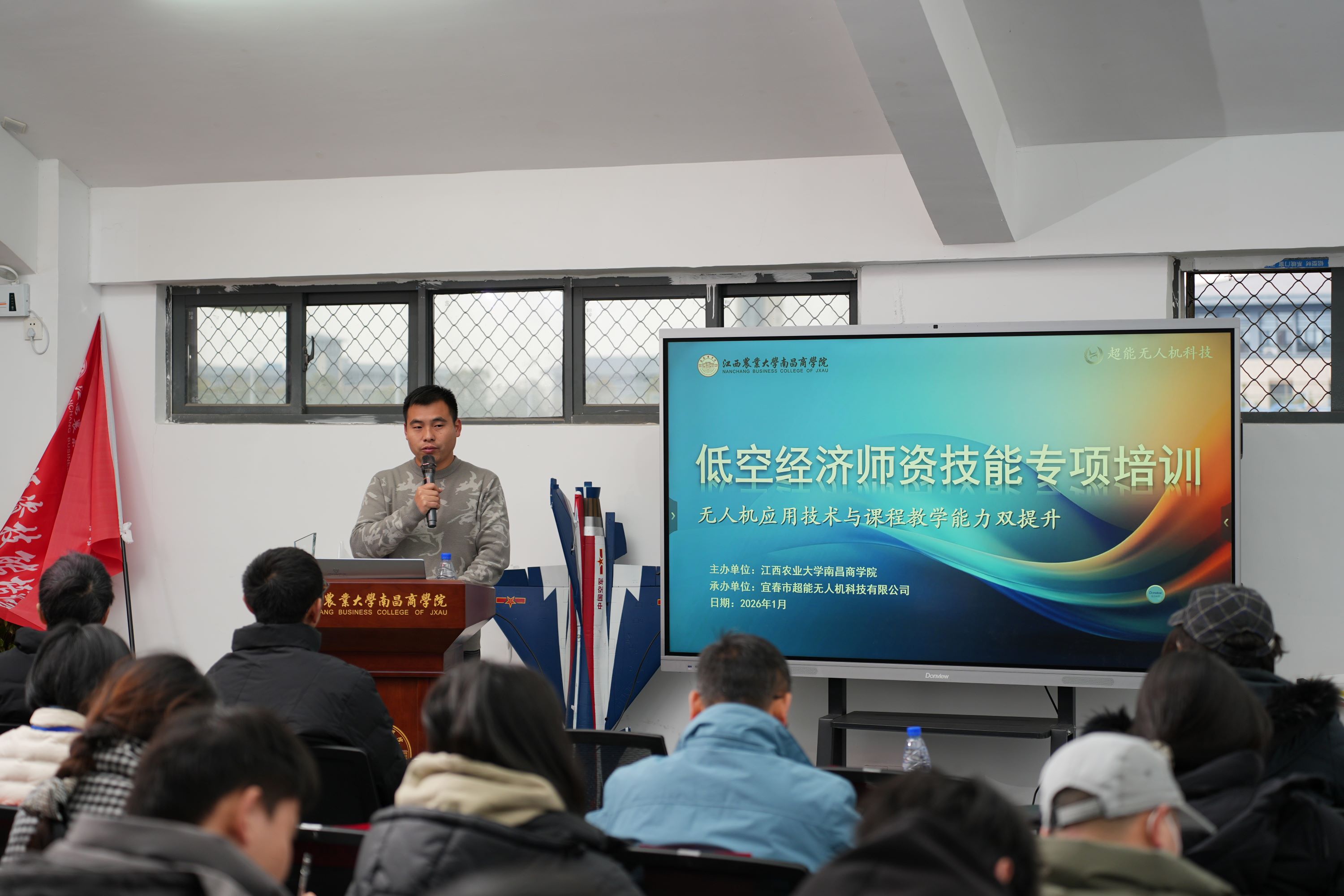 为深入推进低空经济相关专业建设,提升教师实践教学与应用能力,1月12日,学院举行低空经济师资技能专项培训开班仪式。院纪委书记邱波,智能飞行与信息工程学院负责人、宜春超能无人机科技有限公司创始人张磊及授课团队以及各单位共40名教师学员参加。