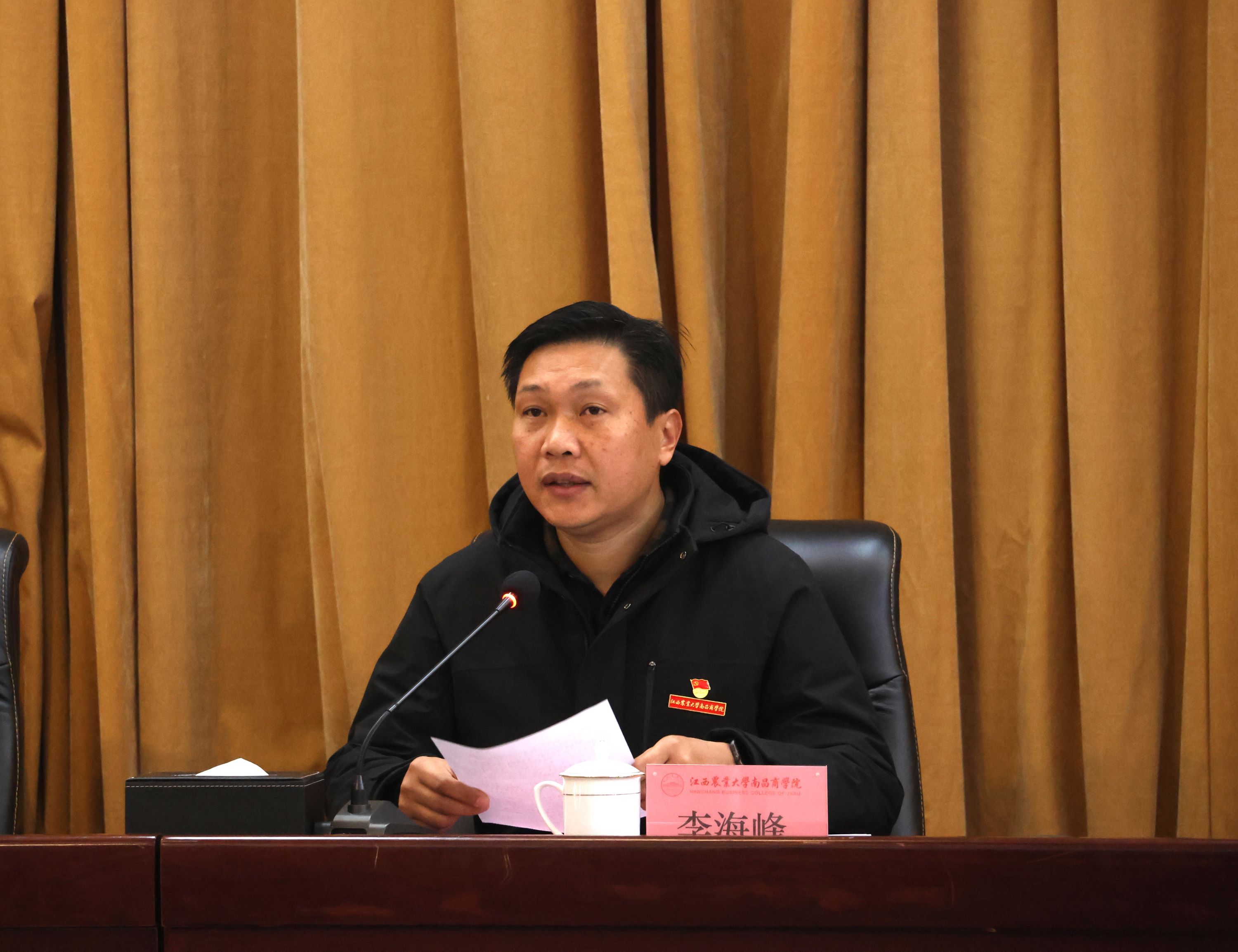 李海峰结合习近平总书记重要讲话精神和校本部党代会精神,就学院“十五五”开局提出几点要求:一要绘就“全局之图”,紧扣“数智农商”特色,以服务江西“1269”行动计划为着力点,贯彻校本部党代会部署,不断深化教育改革。二要攥紧“重点之钥”,坚持问题导向,推动党建与业务深度融合,深化“五育并举”,持续建强教师队伍、人才队伍,在科研、竞赛中提升育人成效。三要鼓足“创新之劲”,在产教融合、协同育人、数字赋能等领域注入创新源泉,推动学院现代化发展。四要砥砺“务实之风”,牢固树立“师生为本”理念,持续完善内部治理,完善“大安全”工作体系,建设更高水平的平安校园、清廉校园、幸福校园。