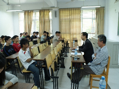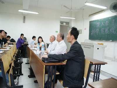 阅读次数: 发布时间:2009-05-11在校关工委的直接指导和参与下,在前期集体备课和向同学征集问题的基础上,2009年5月7日下午,理学院关工委和校关工委的老同志们来到江浦校区仁智楼,与理学院大一同学一起围绕“科学发展观与大学生成长成才”主题进行了别开生面的主题讨论会。出席本次活动的有校关工委常务副主任黄殿臣、副主任郭汉鸿、方礼龙、离退休党工委书记、校关工委秘书钱润男、理学院党委书记兼院关工委主任彭光成、副主任金希春、黄仕华以及肖婉如、陈晓明、周惠珍、李贞俊等老师。