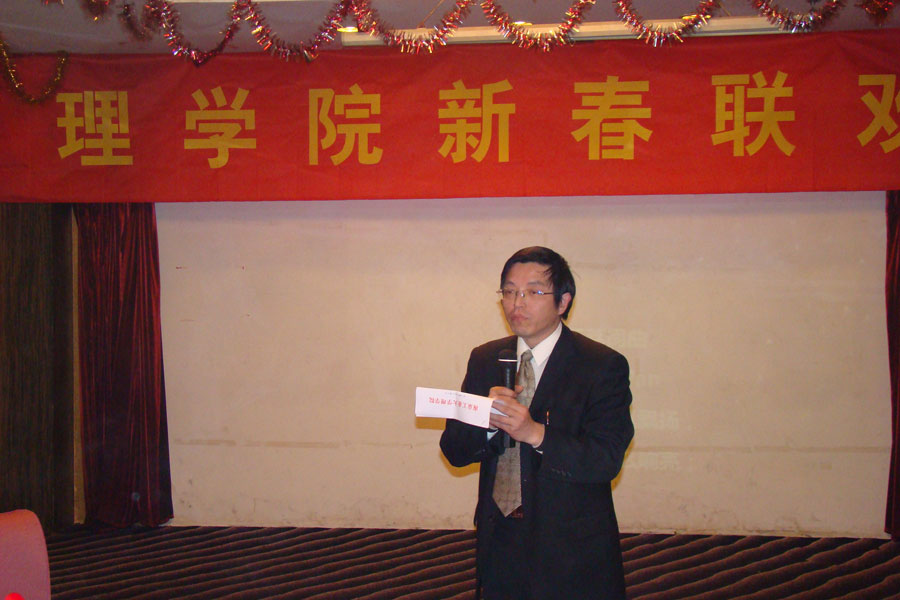 首先,院党委书记彭光成老师致新年祝词。彭书记总结了2009年beat365取得的成绩,并向全院老师送上了新年祝福。接着,施庆生副院长宣读了理学院“教书育人”和“优质服务竞赛”先进个人的表彰决定。