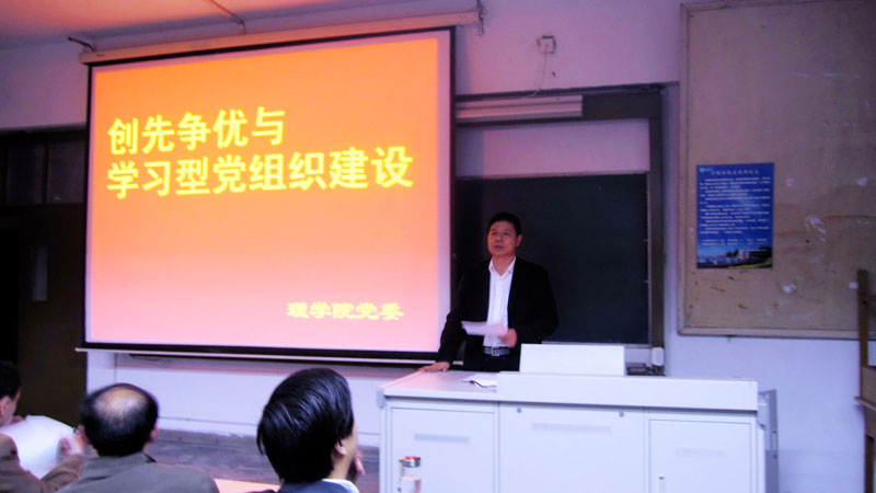 阅读次数: 发布时间:2010-11-08为了配合学校“师德建设重点月”和“安全月”活动,切实将“创先争优”活动不断引向深入,理学院党委近日召开了全院党员大会,对广大党员师生上了一堂特殊的党课。