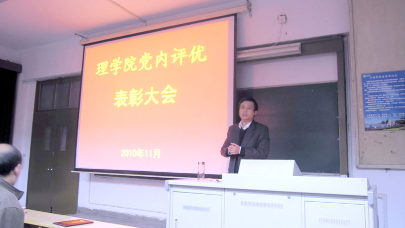 会上,还对2009-2010学年涌现出的理学院先进党支部、优秀共产党员、优秀党务工作者进行了表彰,会议号召全院党员一定要以先进为榜样,努力营造深厚的学习先进、争做先进的良好氛围。