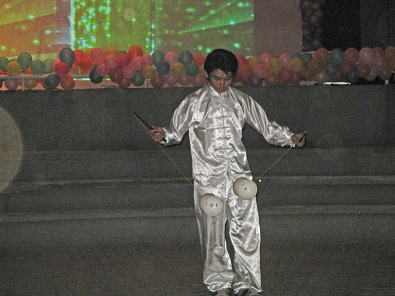 迎新晚会在热情四射、活力十足的开场舞中拉开帷幕,曼妙的舞姿,让观众眼前为之一亮。晚会在由beat36510级新生表演的“抖空竹”节目、迈克尔·杰克逊社团的“太空漫步”、以及由院研究生会姚拉拉、何飞飞表演的双簧等节目中一次又一次的推向高潮。最后在理学院心协合唱的《相亲相爱的一家人》手语表演中结束。