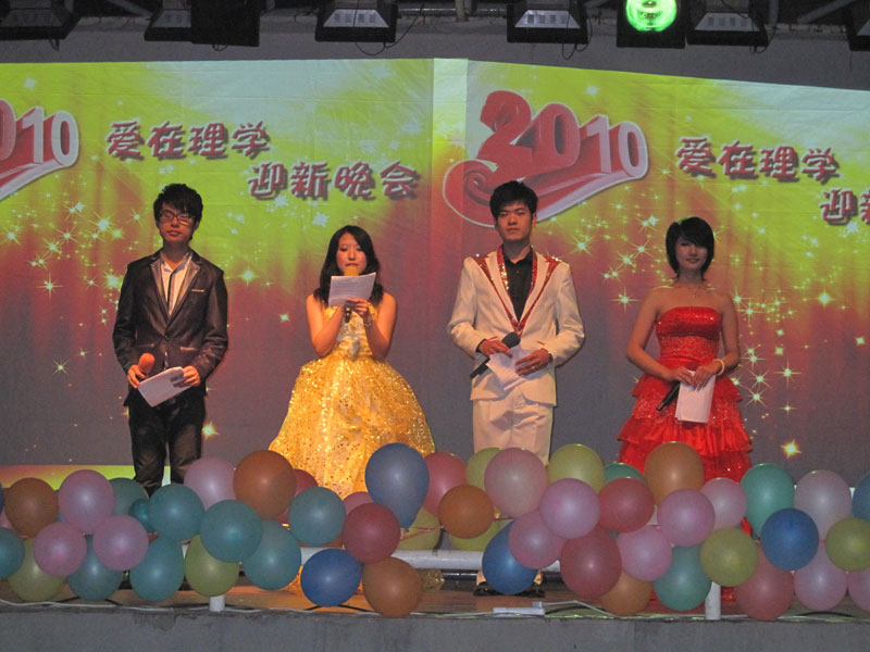 阅读次数: 发布时间:2010-11-08萧瑟的秋风吹不散校园的热情,纷飞的落叶遮不住洋溢的笑脸。2010年11月4日晚,理学院“爱在理学”迎新晚会在江浦校区音乐台成功举办,本次晚会由理学院团委主办,理学院学生会、研究生会承办,理学院党委书记彭光成,院长沈临江,副院长姚成、施庆生、刘国庆、朱红军,副书记杨文忠以及各系、院办、学办负责人和班主任等出席并观看了演出。