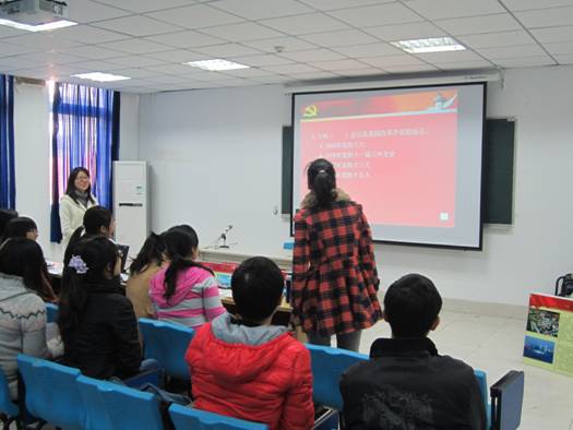 本次活动有四个环节组成。首先以展板秀的形式,介绍历届党代会会议,重点展示了近20年来党的发展。其次为“党史知识竞答”环节,让支部党员在抢答的氛围中,加深对党史的了解,更好地理解党的理论科学性。随着夜幕的来临,也迎来了本次活动的高潮——“观影魅力之夜”,播放了胡锦涛在开幕式上的致辞、新一届中央委员会总书记习近平的讲话和简介,并通过《新闻1+1》全面介绍了十八大的主要内容和意义,在视频放映环节,支部全体党员认真地观看视频,并做详细的记录。最后一个环节是开展十八大专题民主生活会,支部党员结合自己实际情况交流了十八大精神的学习心得。