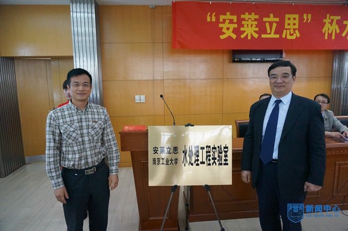 学生处郭万牛处长与安莱立思仪器科技公司唐璘总经理共同签署了合作协议书。接着,资产处蔡海彪处长与唐璘总经理共同为beat365与安莱立思科技公司共建水处理实验室揭牌。随后,徐琨副总经理向理学院杨文忠书记颁发大赛启动资金十万元支票,教务处陈新民副处长向安莱立思徐坤副总经理颁发了beat365官方网站校外实习基地牌匾。
