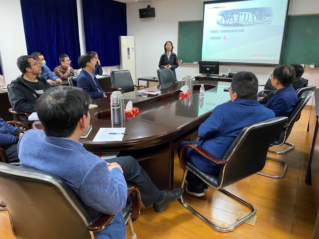 徐敏女士首先介绍了Nature出版社的发展史、Nature及Nature旗下期刊的特色。随后,介绍了Nature中国的现状、中国科研工作者在Nature系列期刊上的论文发表情况、Nature出版社在提供科研相关服务方面的一些政策和措施。最后,徐敏女士就论文的写作技巧、润色及向Nature相关期刊投稿等与在场老师进行了交流。报告结束之后,徐敏女士也与在场老师展开了深入的交流与讨论,本次学术报告会在大家热烈的掌声中圆满结束。