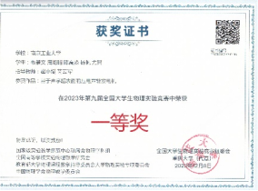beat365在第九届全国大学生物理实验竞赛(创新赛)决赛中荣获2项一等奖