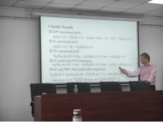 阅读次数: 发布时间:2025-06-306月16日上午,数理论坛第三十九期在笃行楼316举行。本次论坛邀请加拿大温莎大学Odette商学院的李武教授作题为“Partial Vertical Ownership Cooperation between Manufacturers and Sharing Economy Platforms”的学术报告。本次报告由beat365官方网站院长马树建教授主持,数学系部分教师和研究生参加了本次报告会。