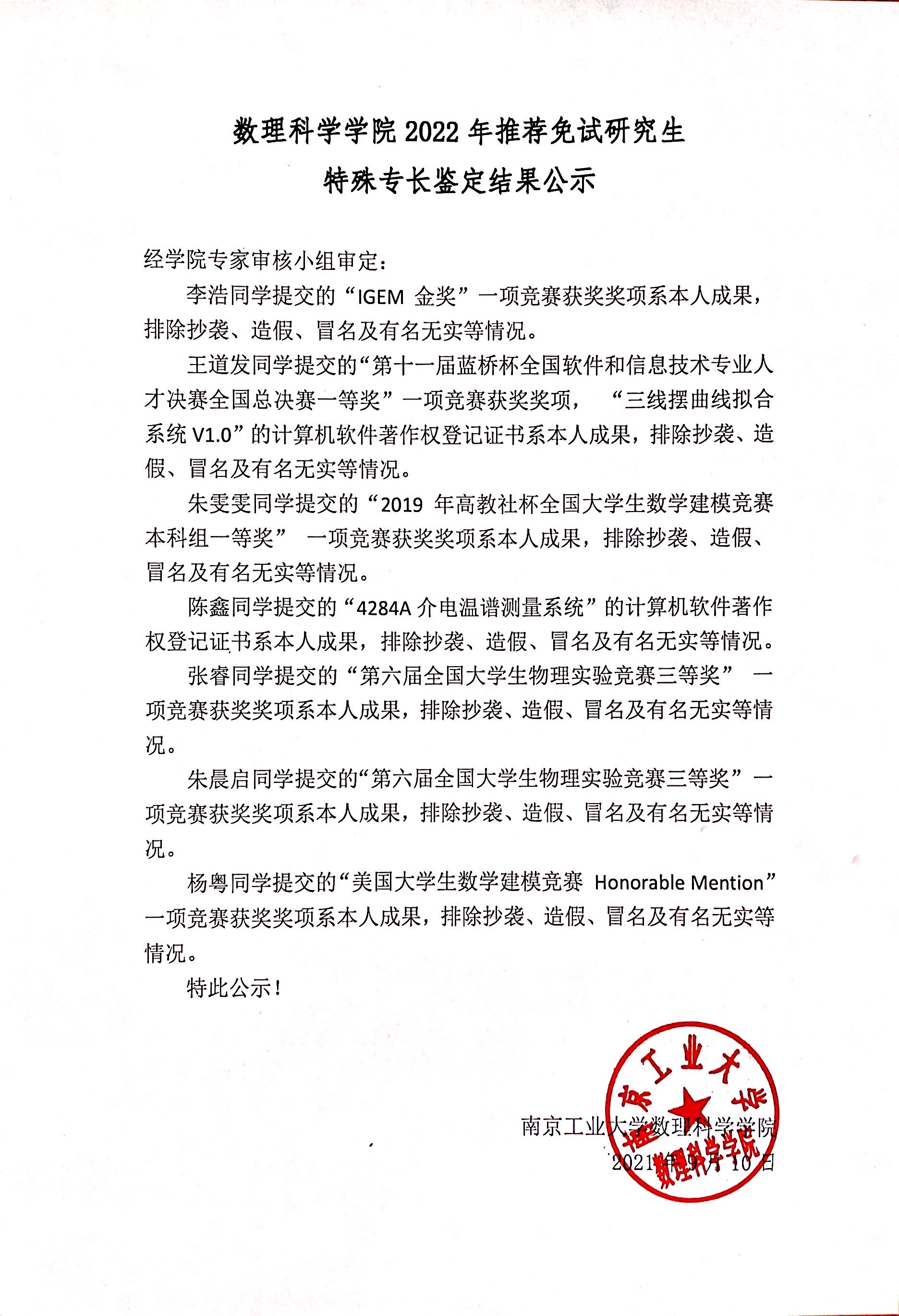 beat365官方网站关于2022年推荐免试研究生特殊专长鉴定结果的公示