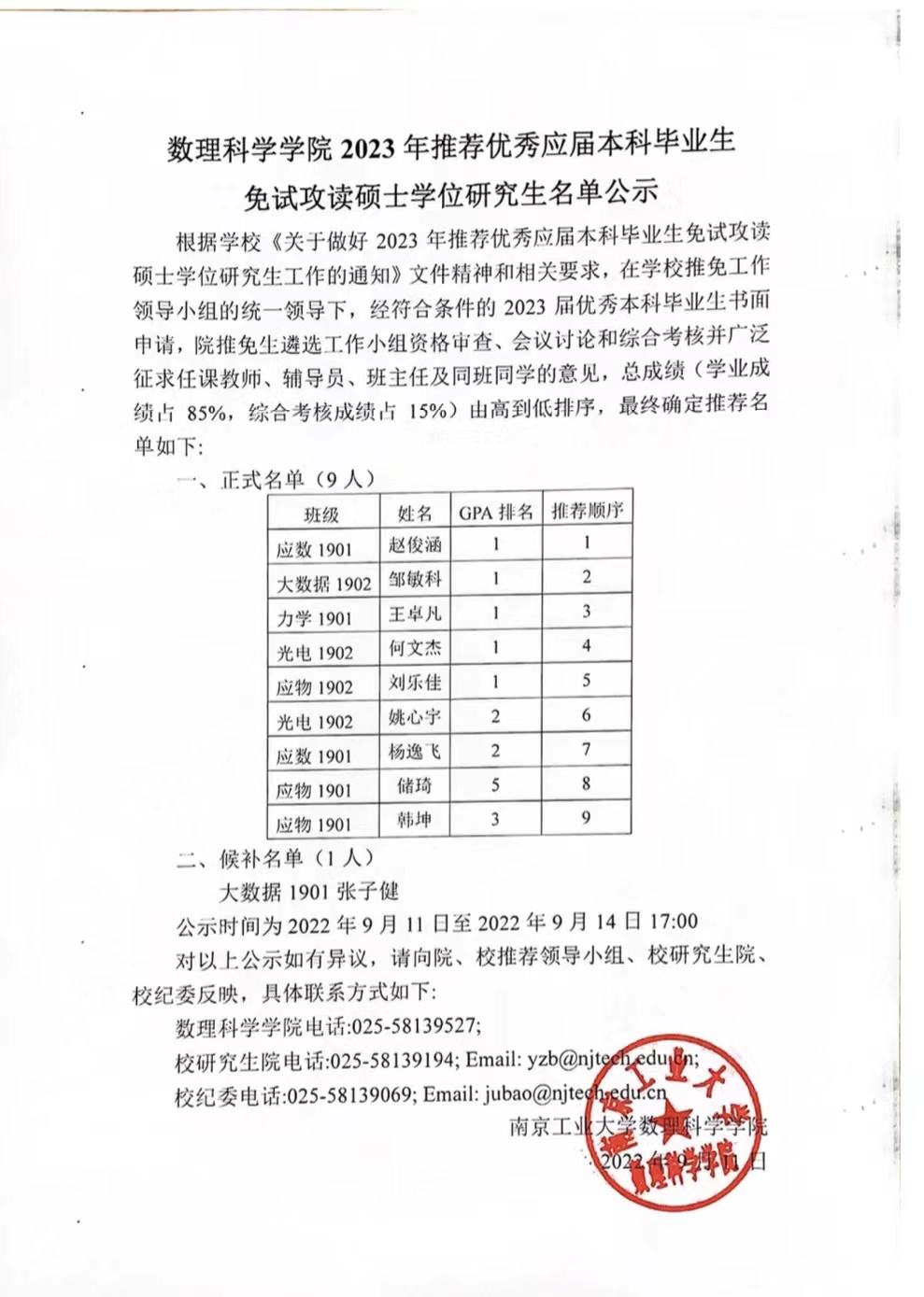 beat365官方网站2023年推荐优秀应届本科毕业生免试攻读硕士学位研究生名单公示