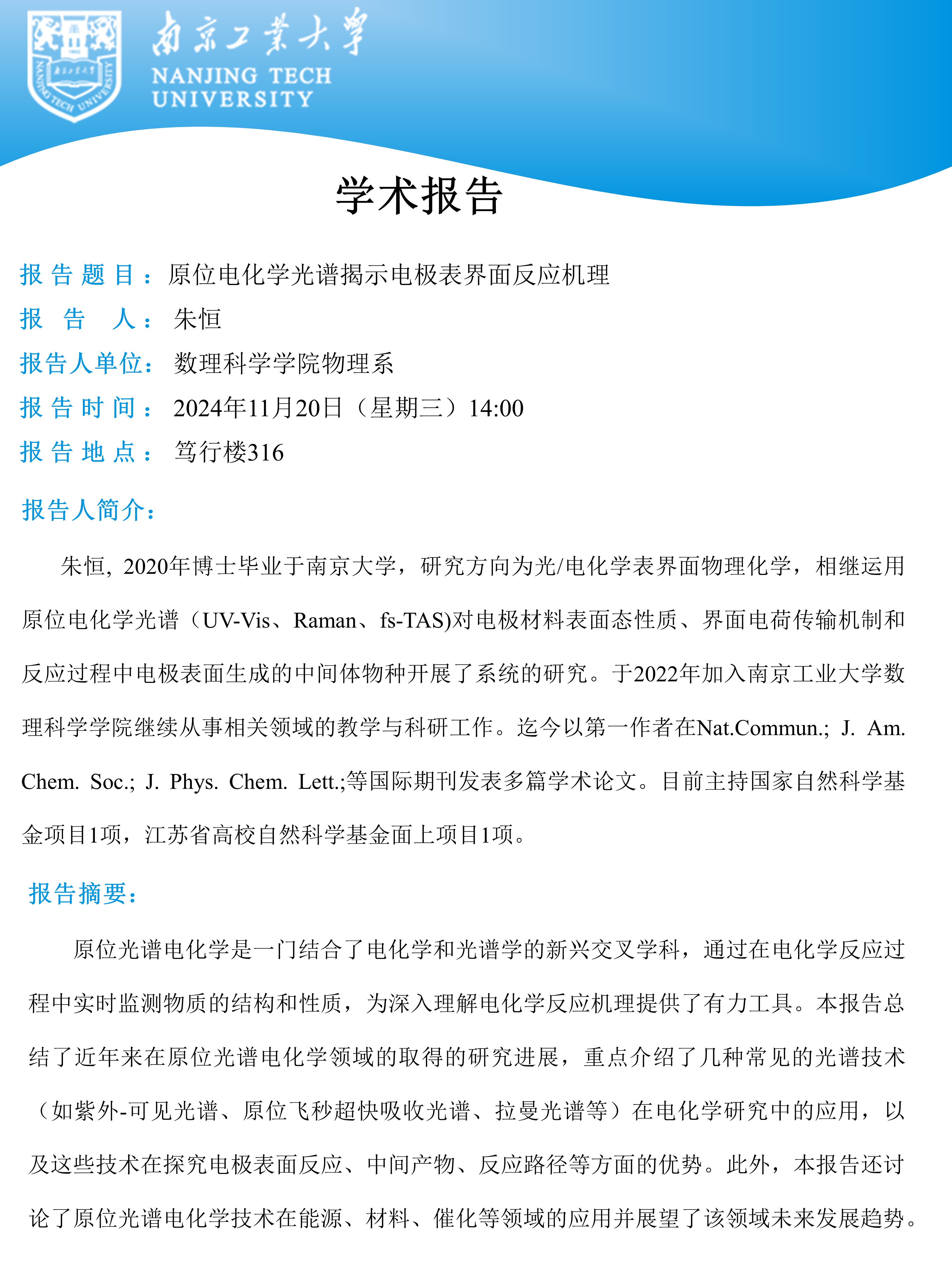 数理论坛第三十期:物理系朱恒老师做学术报告